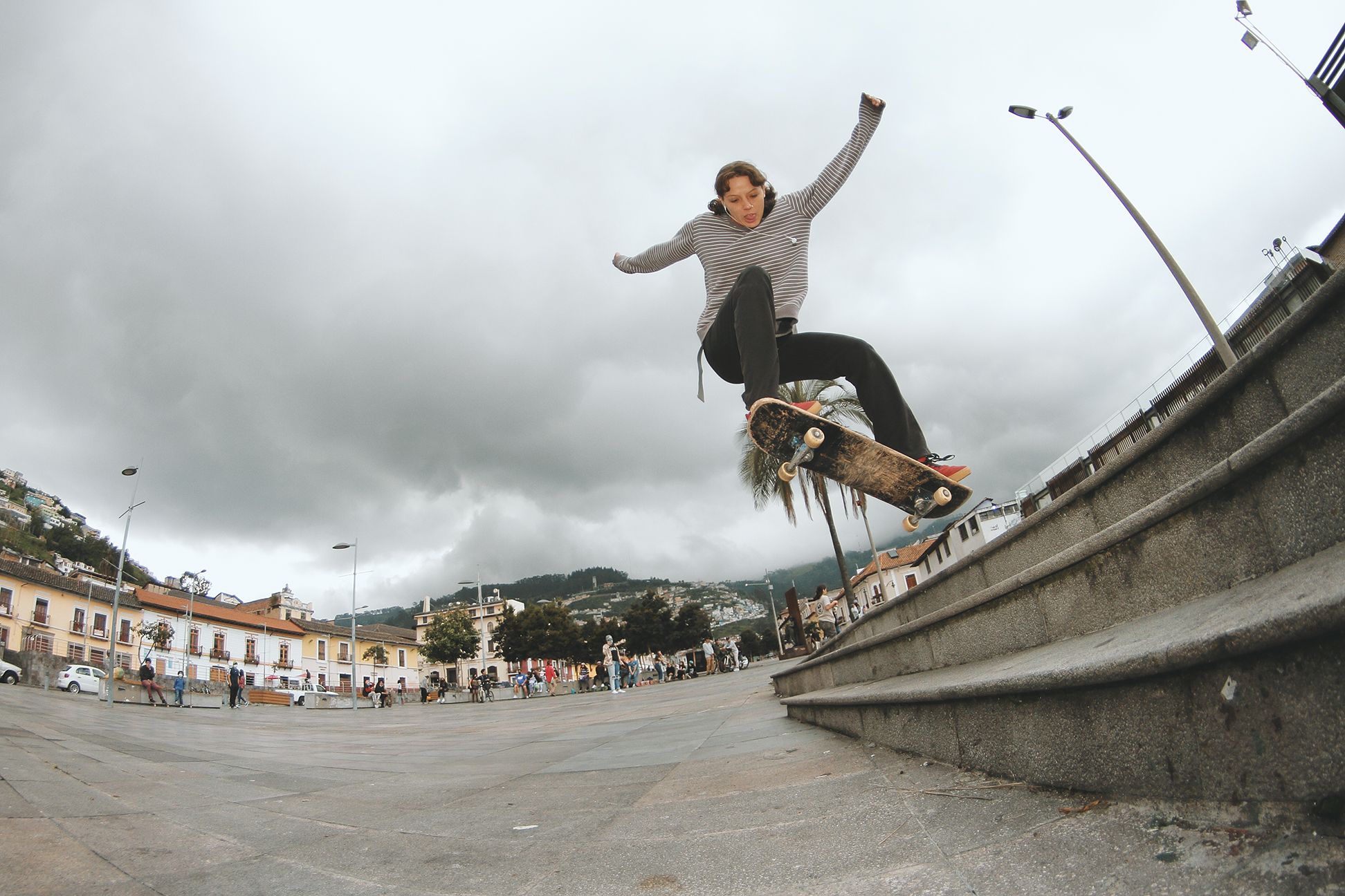 Después, llegó el turno de las chicas que tienen un nivel más avanzado. De todas las participantes, quienes más se destacaron fueron Darlinjha Ulloa, con varias de combinaciones de 50-50 a los filos de la estatua en honor al Chula Quiteño, y Mireya Ortiz con un fs 180 a las 4 gradas de la salida del museo y también un fakie bigspin a un costado de las gradas del mismo espacio.