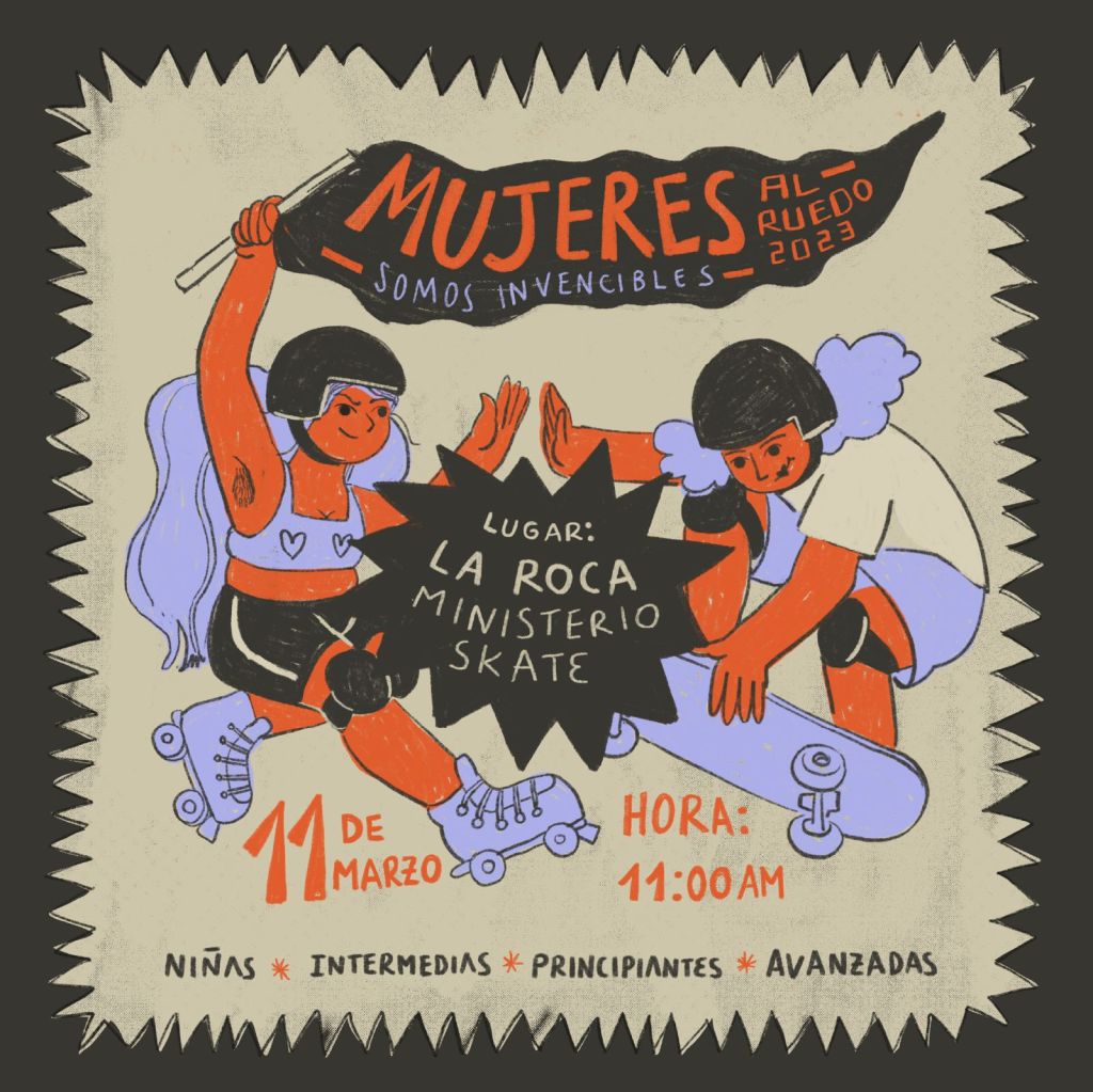 Como cada año, para conmemorar el 8 de marzo las chicas de Radical Girls realizaron su evento denominado MUJERES AL RUEDO 2023 – “Somos Invencibles”. En esta ocasión, el lugar escogido fue “La Roca, Ministerio Skate” en Carapungo, al norte de la ciudad de Quito. Desde temprano, el público y las participantes del evento poco a poco fueron llenado las gradas y obstáculos del parque. El cronograma se dividió en varias actividades tanto para Roller Blade, como para Skateboarding. A las 10h30 inició el registro y calentamiento de todas las participantes; luego, a las 11h30 se dio paso a la clase magistral de rampa, junto al profesor de SPOT Indoor Skate & Bike Park, Luis Benítez.