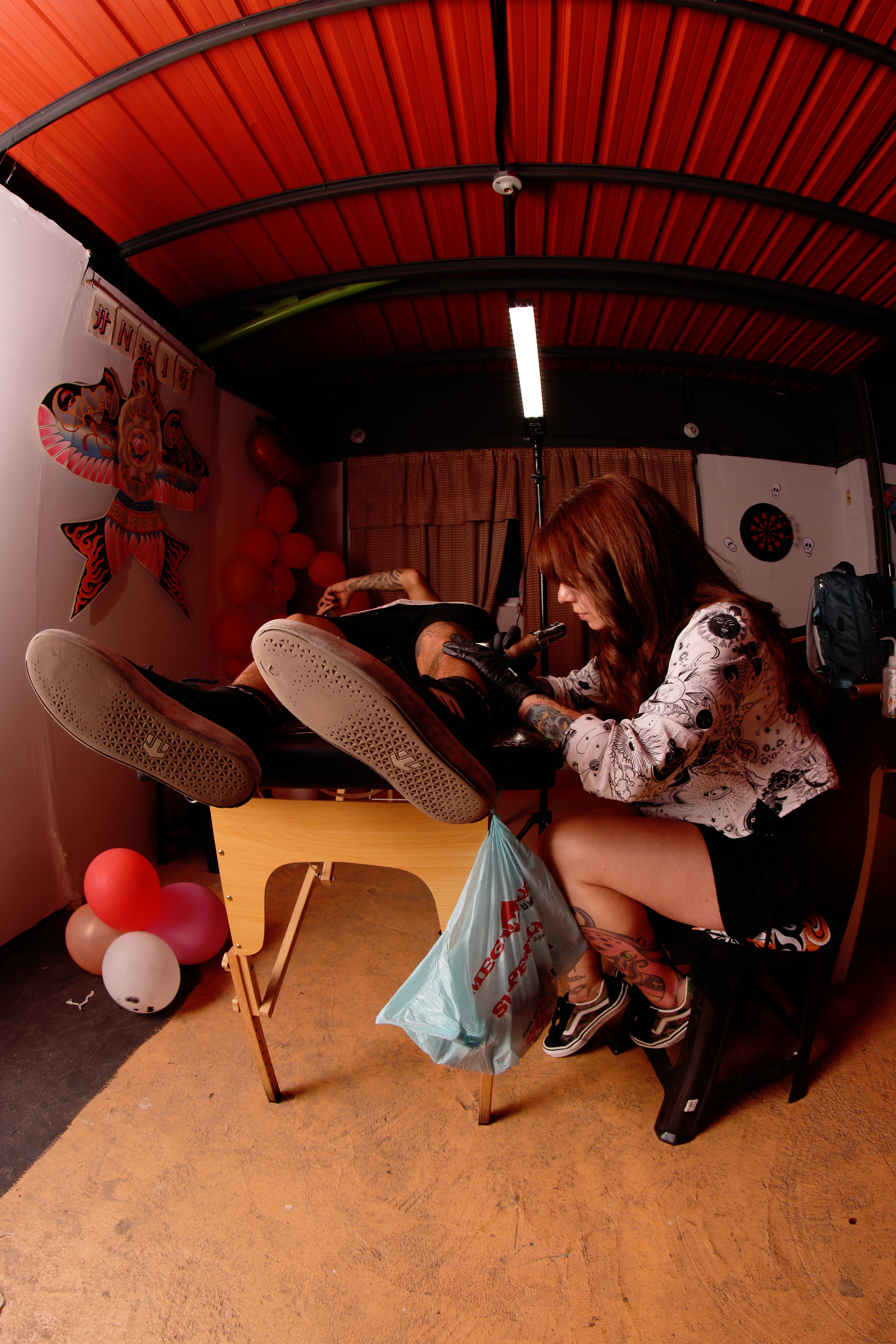 Muchos riders llegaron durante todo el día, con sus mejores disfraces —desde esqueletos voladores hasta vampiros haciendo wallrides gigantes— para participar en competencias de best trick, mejor disfraz y una sesión de música iluminada por luces, humo y beats locales.